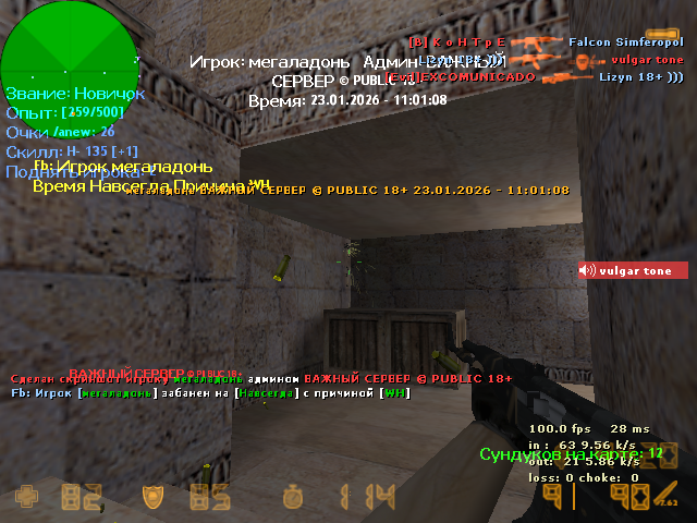 пояснений нет, абсолютно беспричинный бан. Я понимаю админ должен наблюдать за сервером, но пусть обяснит теперь мне, в каком месте он тут увидел вх.