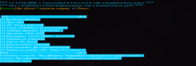 Kicked :"Вы забанены. Подробная информация в вашей консоли."
